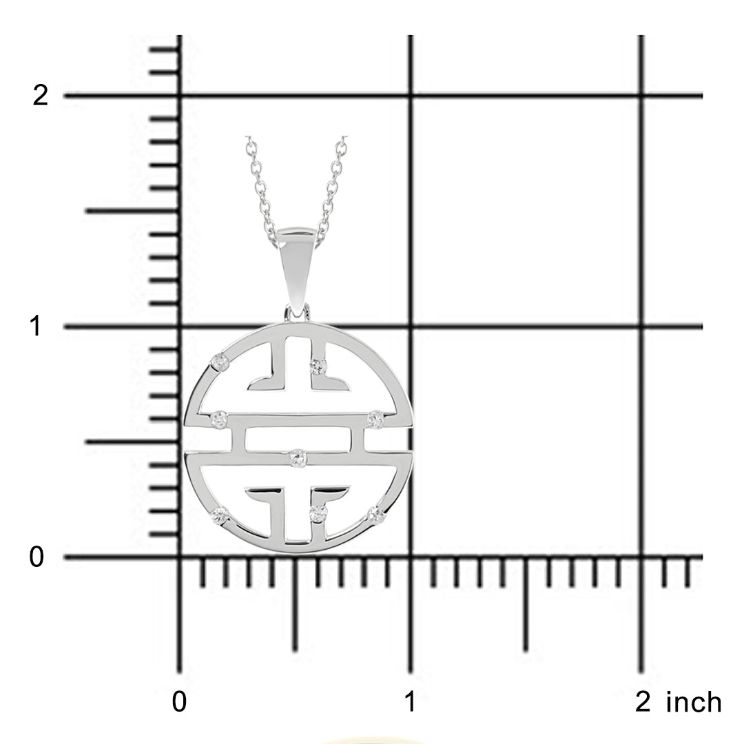 Made of silver, this pendant necklace features the Gump's shou — the symbol of long life and prosperity — surrounded by white sapphires.