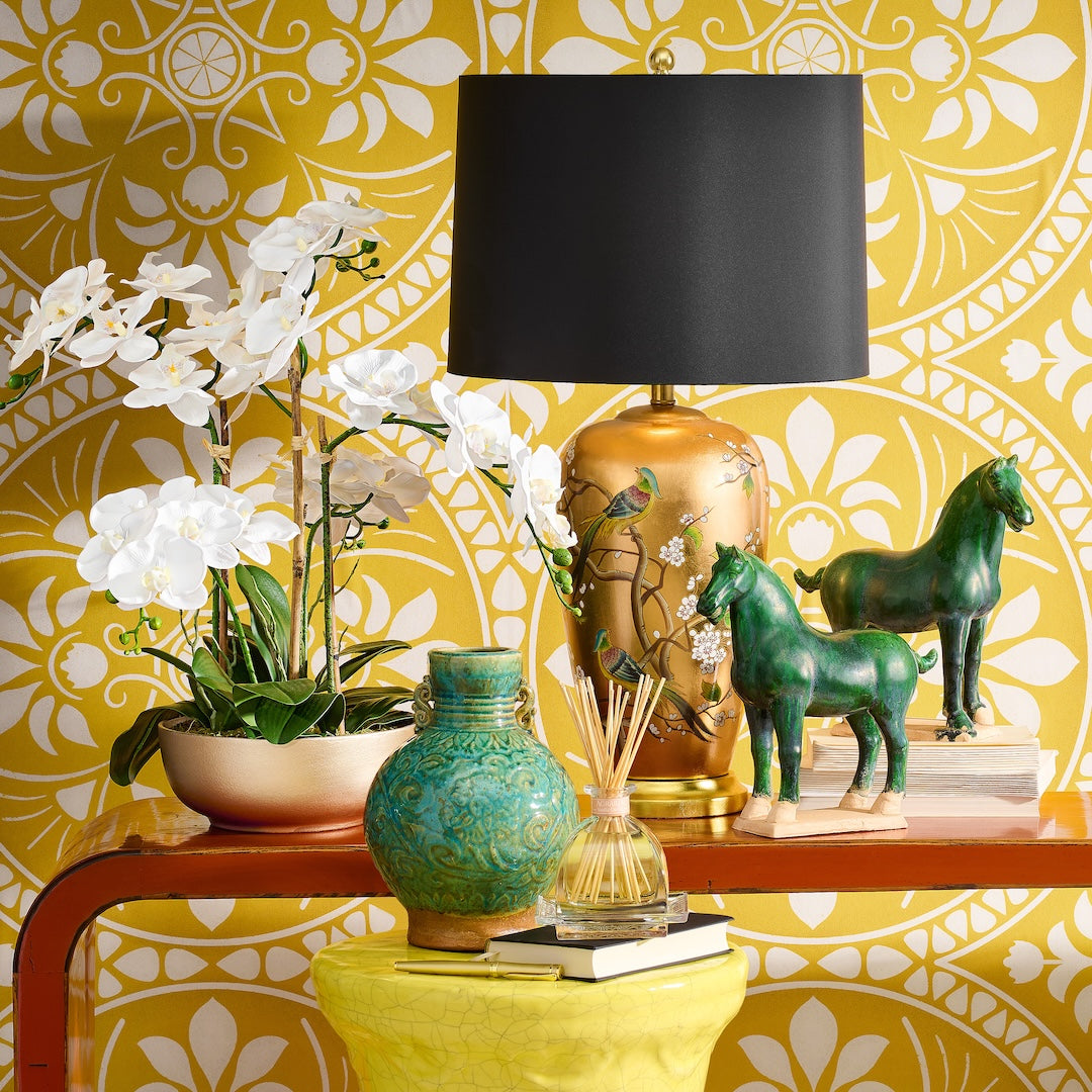 In a breathtaking display of nature's beauty, our faux white orchids set in a shimmering golden ceramic bowl is the epitome of elegance. The making of artificial flowers is an ancient art that originated in China's Tang Dynasty more than 1,300 years ago. Bountiful arrangements of color and texture, our exquisite greenery is meticulously shaped and painted by hand to perfectly mimic nature’s beauty.