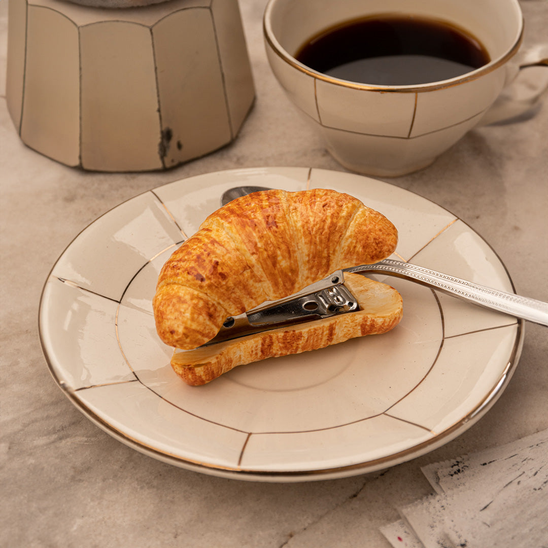 Handcrafted from porcelain, and then handpainted and finished with stainless steel hardware, this delightful desktop accessory delivers serious function with a side of whimsy. A charming gift for your favorite Francophile.