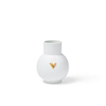 A single golden heart gleams against smooth white porcelain, adding warmth to this petite, sculptural vase. Whether offering blooms or standing sweetly on its own, it’s a tender gesture in timeless form.