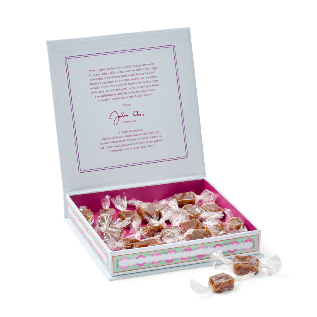 Infused with the essence of real sakura blossoms and kissed with rose and cardamom, each strawberry caramel offers a delicate balance of floral and fruit. Handcrafted in small batches, these confections are as nuanced as they are indulgent.