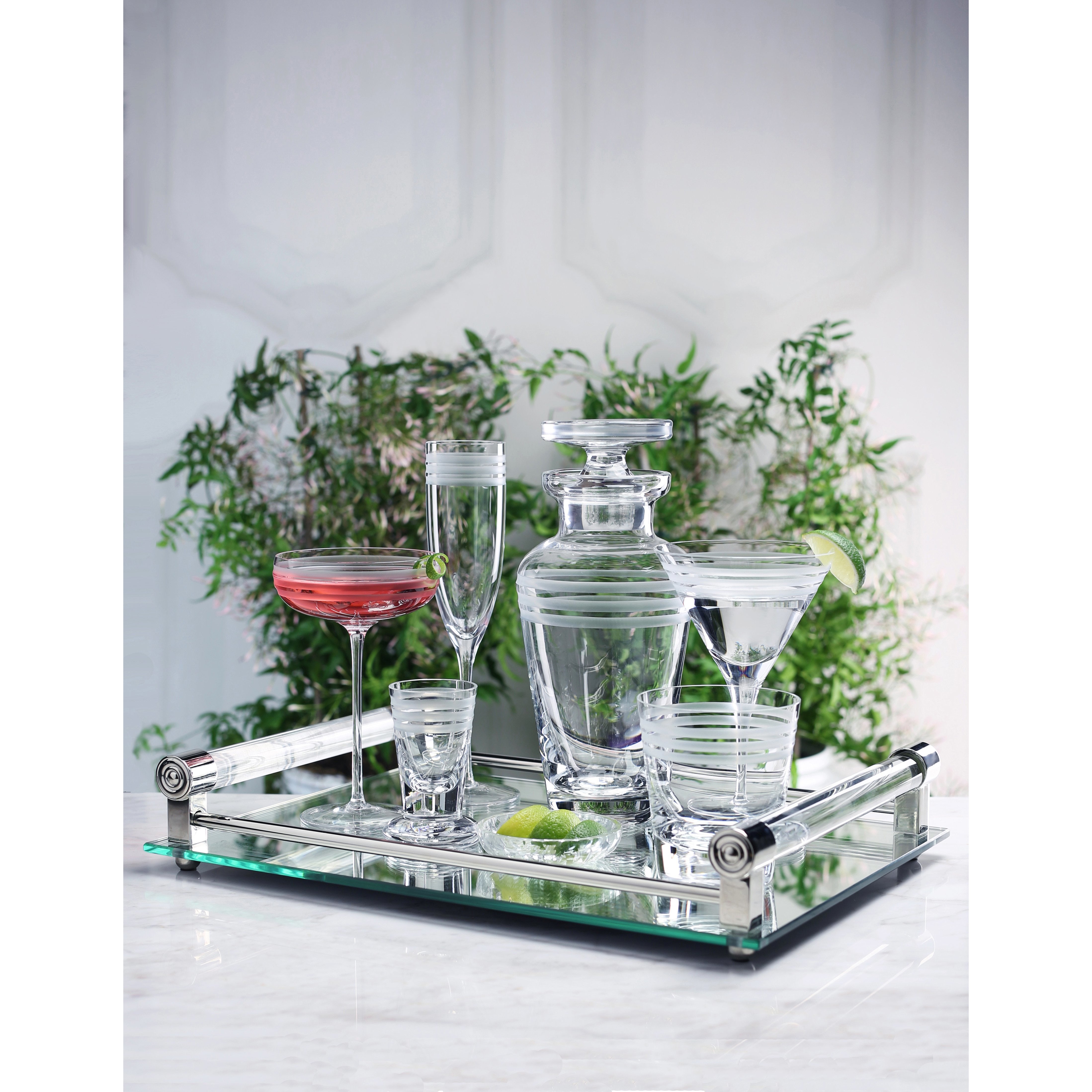 Made of clear crystal, this elegant martini glass is part of the Madison Collection, a line of barware distinguished by three cut and frosted horizontal lines. Founded in 1995, William Yeoward is known for its stunning crystal creations inspired by English and Irish glassware of the 18th and early 19th centuries. Each piece is handcrafted using the same traditional methods employed more than 150 years ago. 7 1/4"H; 8 oz.