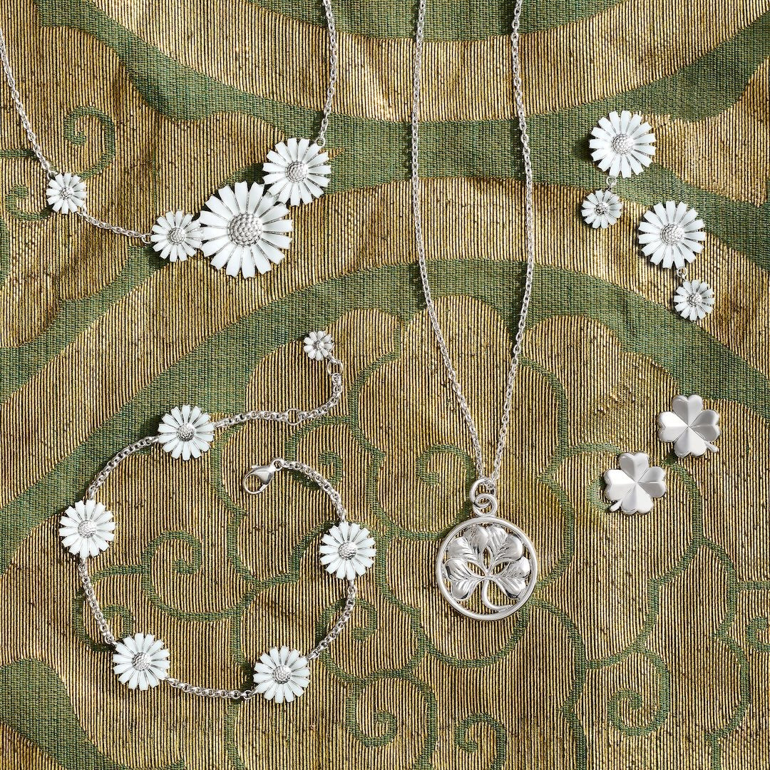 Crafted in sterling silver, four stunning daisies are hand-plated in a warm white enamel, giving life to a piece that's elegant and versatile. It joins a collection that was first inspired by a 1940s daisy-shaped brooch gifted to HM Queen Margrethe II of Denmark.