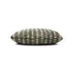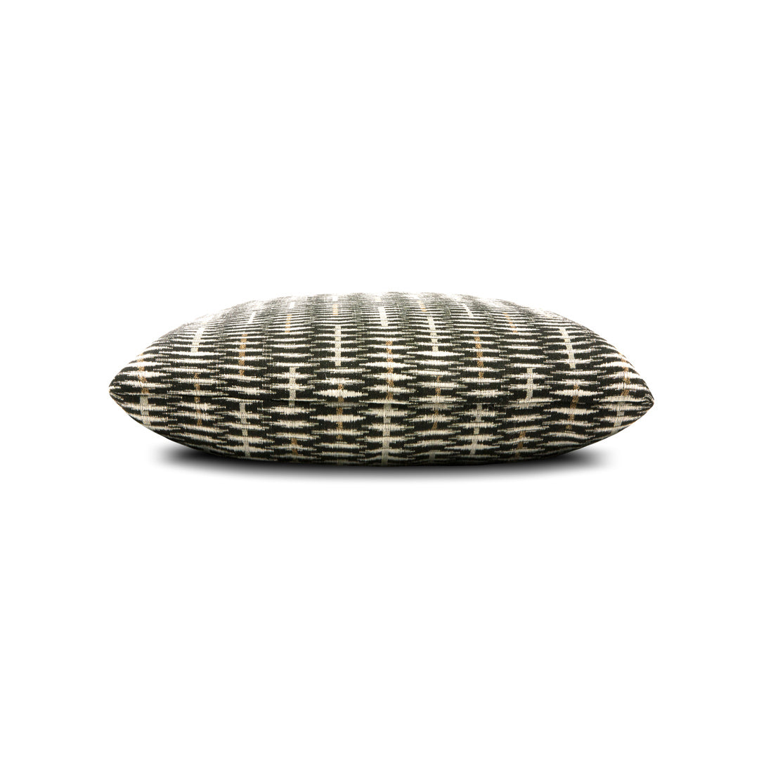 A modern riff on basketweave, this pillow's tightly woven pattern layers ebony, taupe and ivory in a rhythmic interplay of texture and tone.