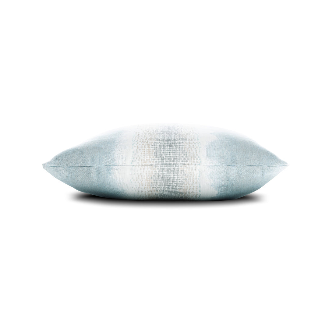 Softly blurred edges fade into a center panel of intricate chenille blocks on this pillow, where pale sky tones and subtle texture evoke the calm rhythm of shifting light.