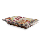 A pattern with centuries of admirers, the tobacco leaf motif traces its origins to 18th-century export porcelain prized for its vibrant color and botanical detail. This rectangular tray reinterprets the richly layered design — featuring stylized hibiscus blooms and pomegranate flourishes — and is equally at home corralling keys in the entryway or serving as a decorative catchall in the powder room.