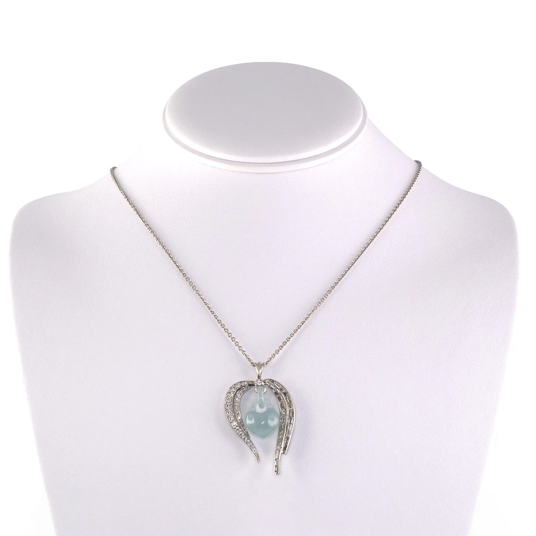 Diamond & Jadeite Bleeding Heart Pendant Necklace