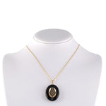 A poetic memento from the 1860s, this antique locket speaks volumes in its silence. Its oval silhouette is encased in glossy black enamel and crowned with a lozenge of seed pearls, framed in gold. The hinged locket opens to reveal space for two portraits or cherished keepsakes — an intimate detail that captures the sentimentality of the era.