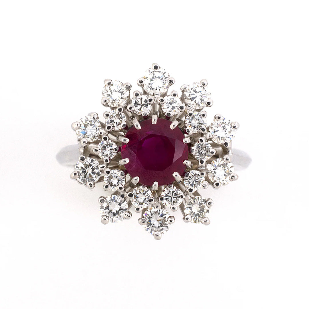 Estate F & F Felger Burma Ruby & Diamond Tiered Cluster Ring