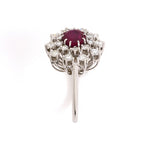 A striking mid-century design from F & F Felger, this ring features a vibrant Burma ruby at its center, framed by a dazzling array of round brilliant-cut diamonds. The intricate white gold setting showcases the craftsmanship of the era, with a refined, openwork gallery that enhances the ring’s presence. Gump’s is forever treasure hunting for the best of everything and our collection of estate jewelry — featuring rare antique pieces — is no exception. Distinguished in provenance, each item is one of a kind, reflecting its distinctive gemstones, materials and craftsmanship.