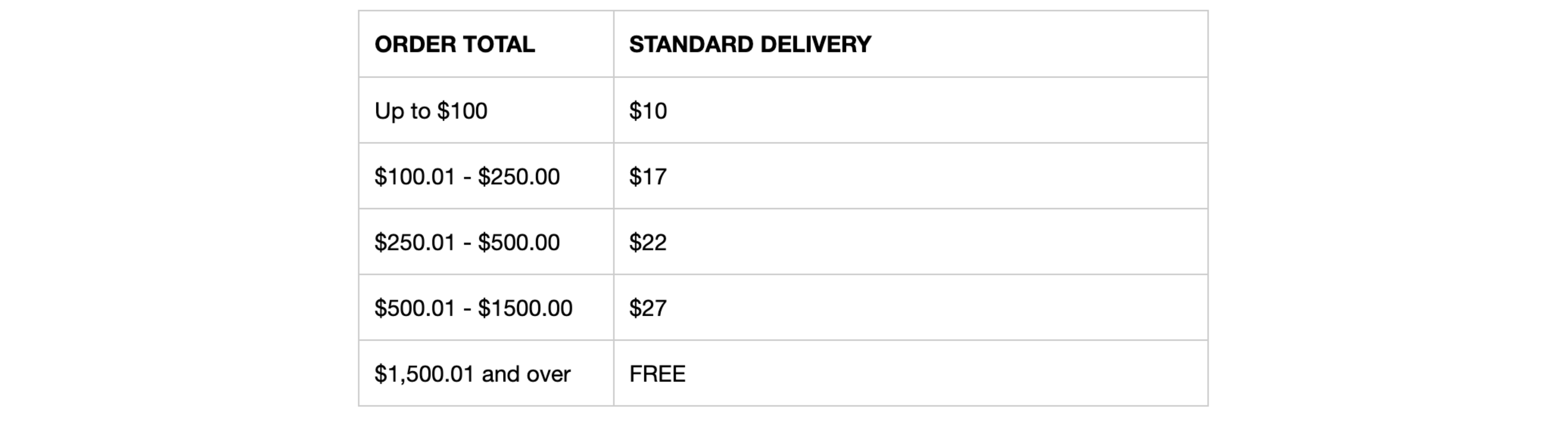 Charges shown below are based on the total value of merchandise shipped to each address.Â