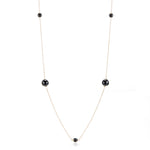 A delicate gold link chain embellished with stations of black jadeite beads. Prized since ancient times and refreshingly modern today, jade was once considered more precious than gold, and is believed to possess spiritual and mystical properties. Gump's Signature jewelry features only the finest materials; each piece is a statement of elegance.