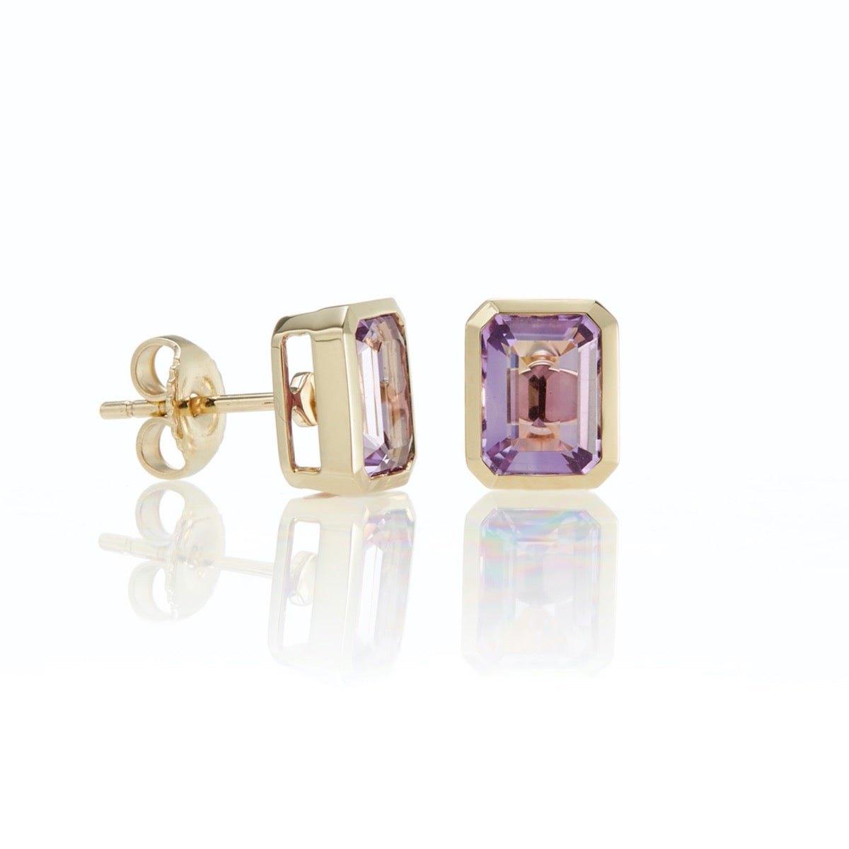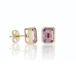 Understated, yet elegant earrings set with bold emerald-cut amethyst gemstones. A type of quartz highly prized for its rich purple hue, amethyst is widely believed to possess calming and balancing properties.