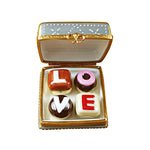 Limoges boxes come in an array of shapes and designs — from the witty and fanciful to the elegant and refined. Made from the pure white porcelain that’s produced only in Limoges, France, this diminutive collectible is crafted and painted by premier artists using techniques that date back to the 17th century. Open the square box to reveal four removable porcelain chocolates that spell out the word 'LOVE.'