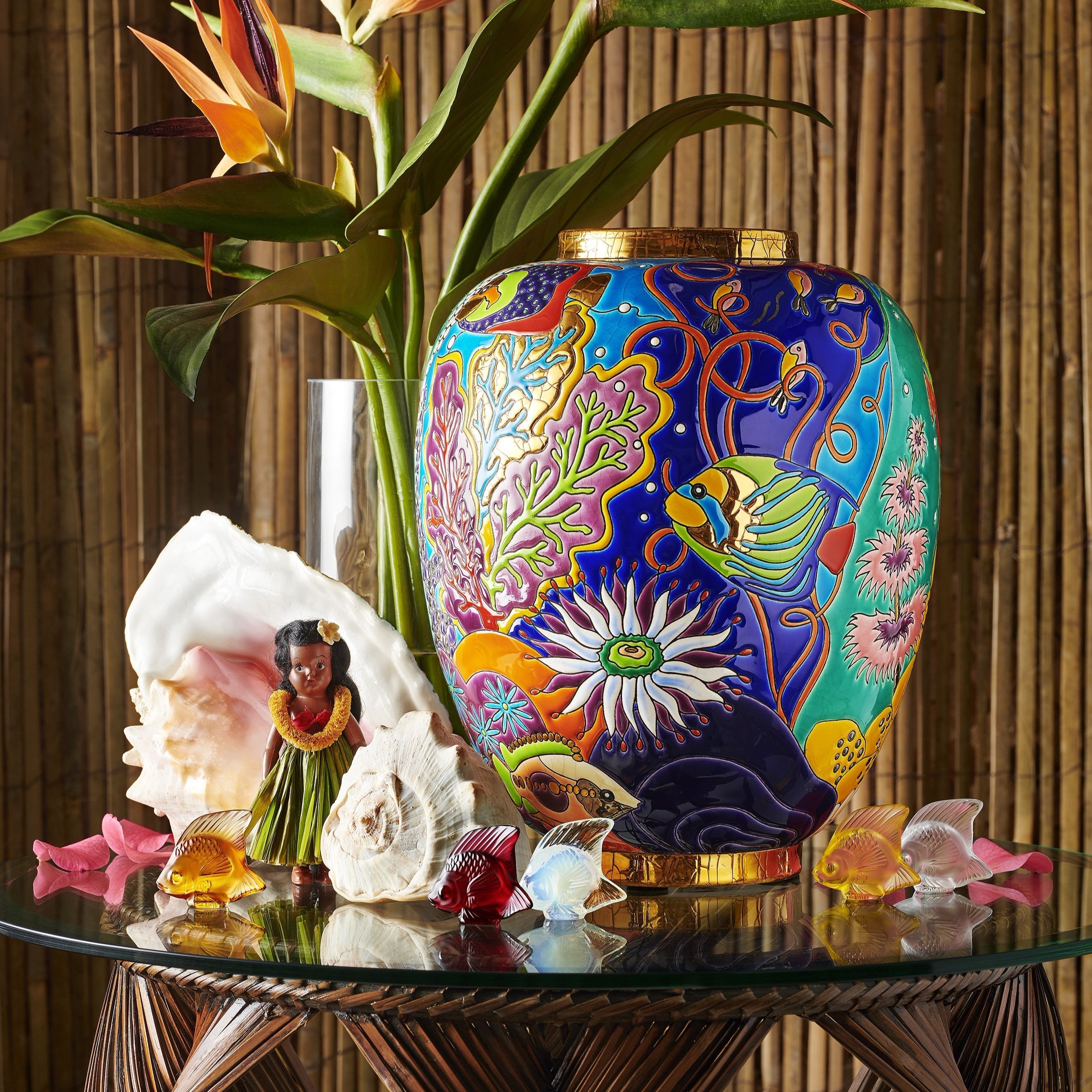 Designed in 1913, this petite crystal fish has become an iconic piece in the Lalique universe. Rene Lalique founded his firm in Paris in 1885, and soon became a celebrated Art Nouveau jeweler. In the 1920s, he developed a cutting-edge glassmaking technique that would become the foundation of this enduring brand. 2"L x 1 3/4"H. Made in France.