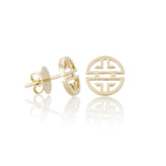 These striking yellow gold earrings are crafted in the shape of a shou, a symbol of long life and prosperity. Finished with a high polish shine, they are the essence of effortless elegance. 14-karat yellow gold. Pierced only. 1/4" diam.