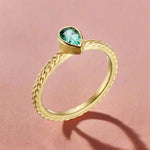 A pear-shaped green tourmaline stacking ring on an 18-karat gold braided band.
