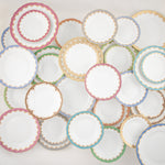 Made of white porcelain and handpainted by master artisans in Hungary, this elegant plate is bordered in green and 24-karat yellow gold. Herend’s porcelain creations feature a signature pattern that dates back to 1858, when a fish-scale decoration inspired a craftsman to create a similar design imitating feathers. 6" diam.