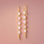 These elegant earrings feature cascading pink opal gemstones, each delicately framed in gold, creating a graceful flow when you move.