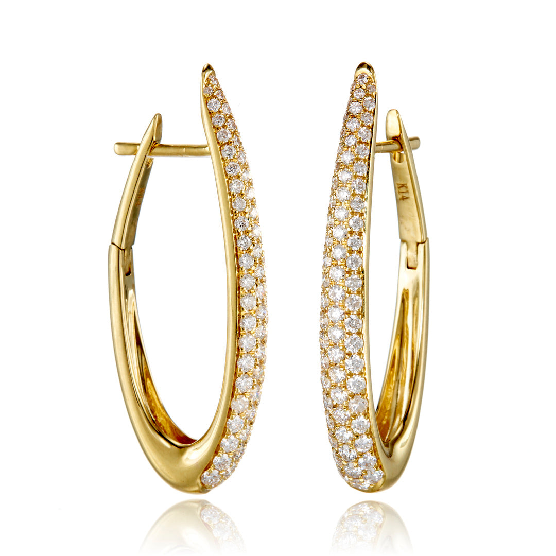 These navette-shaped hoops are refined by their elongated silhouette and softened by the shimmer of pavé-set diamonds. The graduated curve creates a sleek profile that feels both sculptural and understated. Since 1861, Gump's has been a destination for jewelry that offers a lifetime of enjoyment.