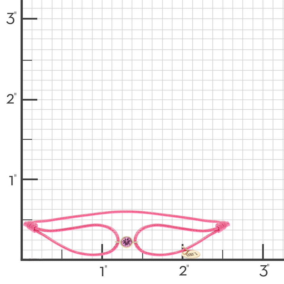 A playful pop of pink sapphire beams from this adjustable bracelet, anchored by soft pink cord and gleaming yellow gold.