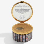 On April 15, 2019, a disastrous fire ravaged the iconic Notre Dame cathedral in Paris. Miraculously, the magnificent stained glass Rose Window remained intact, evoking a beautiful story of resilience and triumph. When this enamel box is opened, it plays 'Ave Maria' in commemoration of members of the public singing the hymn while the cathedral stood in flames. Handcrafted in Stoke-on-Trent, Staffordshire, exquisitely detailed keepsake boxes by Halcyon Days revive classic English copper enameling, a labor-intensive art that flourished in the 18th century. Cast in copper, the box is handpainted with four layers of enamel and fitted with a gold-plated hinge.